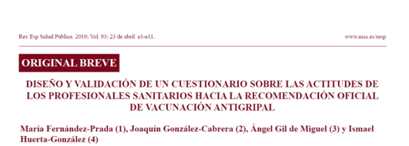 Ahora, un equipo de investigadores, entre los que están nuestros compañeros NEP el Dr. Ángel Gil y la Dra. María Fernández Prada, acaba de publicar un trabajo en el que diseñan y validan un cuestionario sobre las actitudes de los profesionales sanitarios hacia la recomendación oficial de vacunación antigripal.