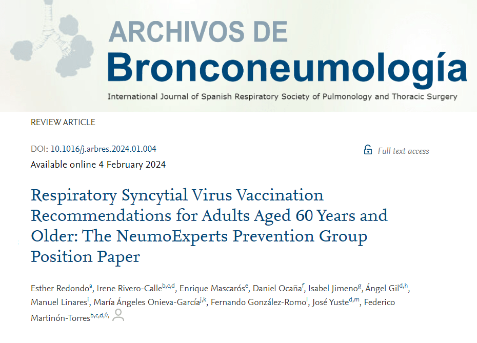 Este artículo científico del Grupo de Prevención Neumoexpertos (NEP) tiene como objetivo proporcionar una posición basada en evidencia y recomendaciones de vacunación contra el VRS para pacientes adultos.